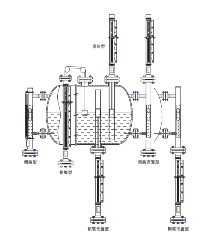 液位計的測量范圍為兩個連接法蘭的中心距(頂裝型除外),其中下連接法蘭的中心即為儀表指示的零點;
