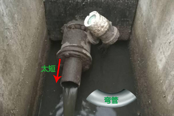 3、顯示報警可能是管道內(nèi)介質(zhì)不滿管或半管的原因造成的,此時可以在出水口加裝一個彎管保證管道滿管圖。