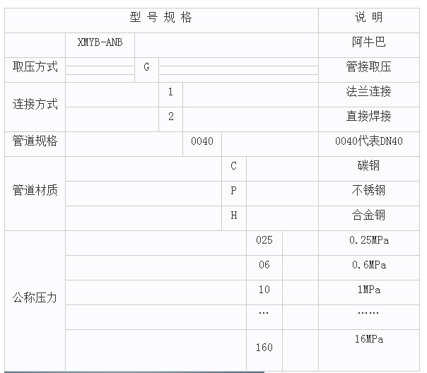 選型規(guī)格及說明