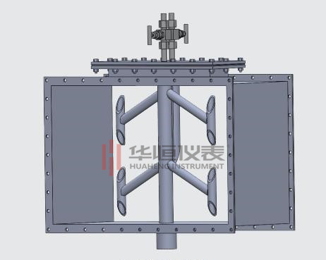 工業(yè)現(xiàn)場大口徑氣體流量計安裝處,由于空間所限直管段長度不夠是普遍現(xiàn)象,這時管道內(nèi)旋轉(zhuǎn)流及流速分布嚴(yán)重畸變,流量計儀表系數(shù)產(chǎn)生很大偏移,非圓截面(矩形、多邊形等)管道內(nèi)流速分布更加復(fù)雜,并且大小管道并不具備相似性,給流量測量帶來很大的困擾,我公司生產(chǎn)的多點矩陣流量測量裝置,通過把整個管道截面分成N個等面積單元,流量傳感器上設(shè)總壓孔,總壓孔的位置正好處于每個單元面積的中心位置,所測總壓即反映了各個單元面積的流速大小,并在流量傳感器中將各點總壓平均后,和位于傳感器背流方向軸線位置的靜壓檢測口測得的靜壓,分別引出流量傳感器,形成差壓輸出,差壓開方與流量存在線性關(guān)系。